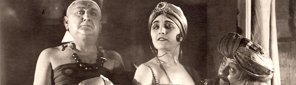 As the alternate title would suggest, this is primarily an Arabian Nights-style drama… but, while on the surface this looks entirely at odds with Lubitsch’s previous comedy work, it actually concerns itself with the same topic: romance, and the various entanglements and complications that lead to it. What’s different here is that instead of being wholly comic it’s often deadly serious (literally, as it turns out), and instead of one simple girl-meets-boy trajectory (as in the preceding three films) there’s two girls and four boys between them, in various combinations. It’s a many-stranded, relatively complex narrative: there’s a group of travelling minstrels, an old sheikh, a young sheikh, a cloth merchant, a bevy of harem girls — all of whom are connected and interact in varying ways with varying objectives, though most are related to love — or lust.