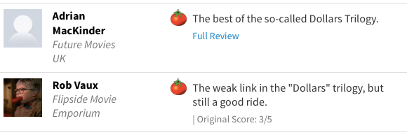 The loosely connected Dollars (aka Man With No Name) Trilogy continued with For a Few Dollars More (which was part of my 100 Favourites last year) and concluded with The Good, the Bad and the Ugly (which someday will get the “What Do You Mean You Didn’t Like” treatment).
